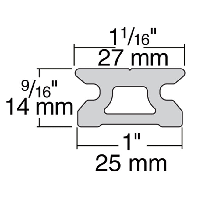 Track is 6061-T6 aluminum, hardcoat-anodized. Two pinstop holes between each fastener.